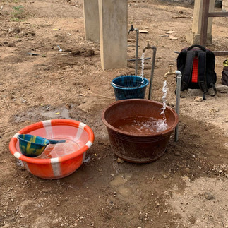 A water tower has been constructed with two water tanks. Solar panels have been installed that will provide enough power to bring running water to the clinic where we installed a faucet. We also installed faucets near the first well. The well pump and faucets are locked for a period of time each day so the well has a chance to recover. Now we wait to see how the solar works during the rainy season.